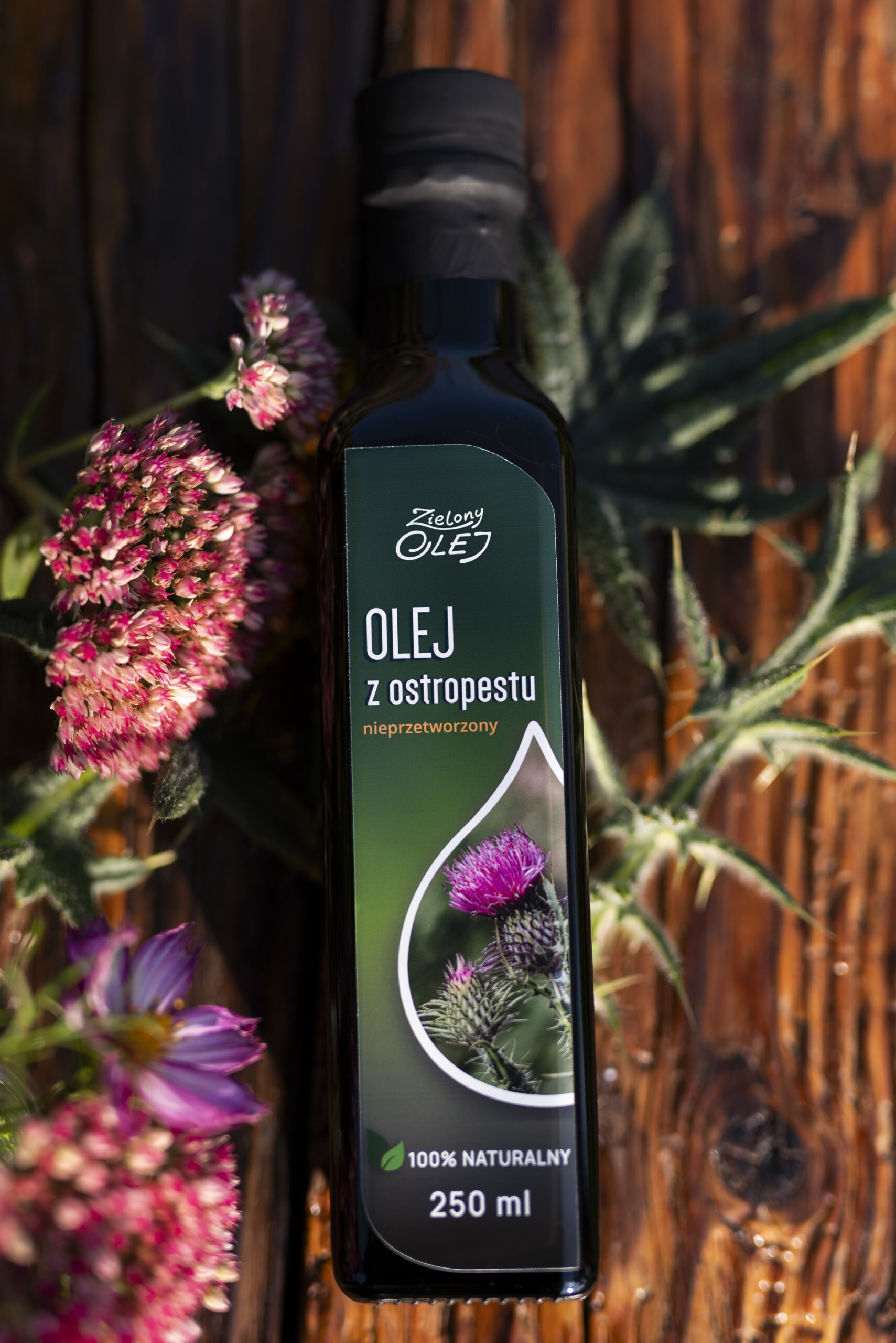 - Należy pamiętać, żeby spożywać olej z ostropestu wyłącznie na zimno. Wymaga przechowywania w chłodnym, ciemnym miejscu bez dostępu promieni słonecznych, a po otwarciu w lodówce.