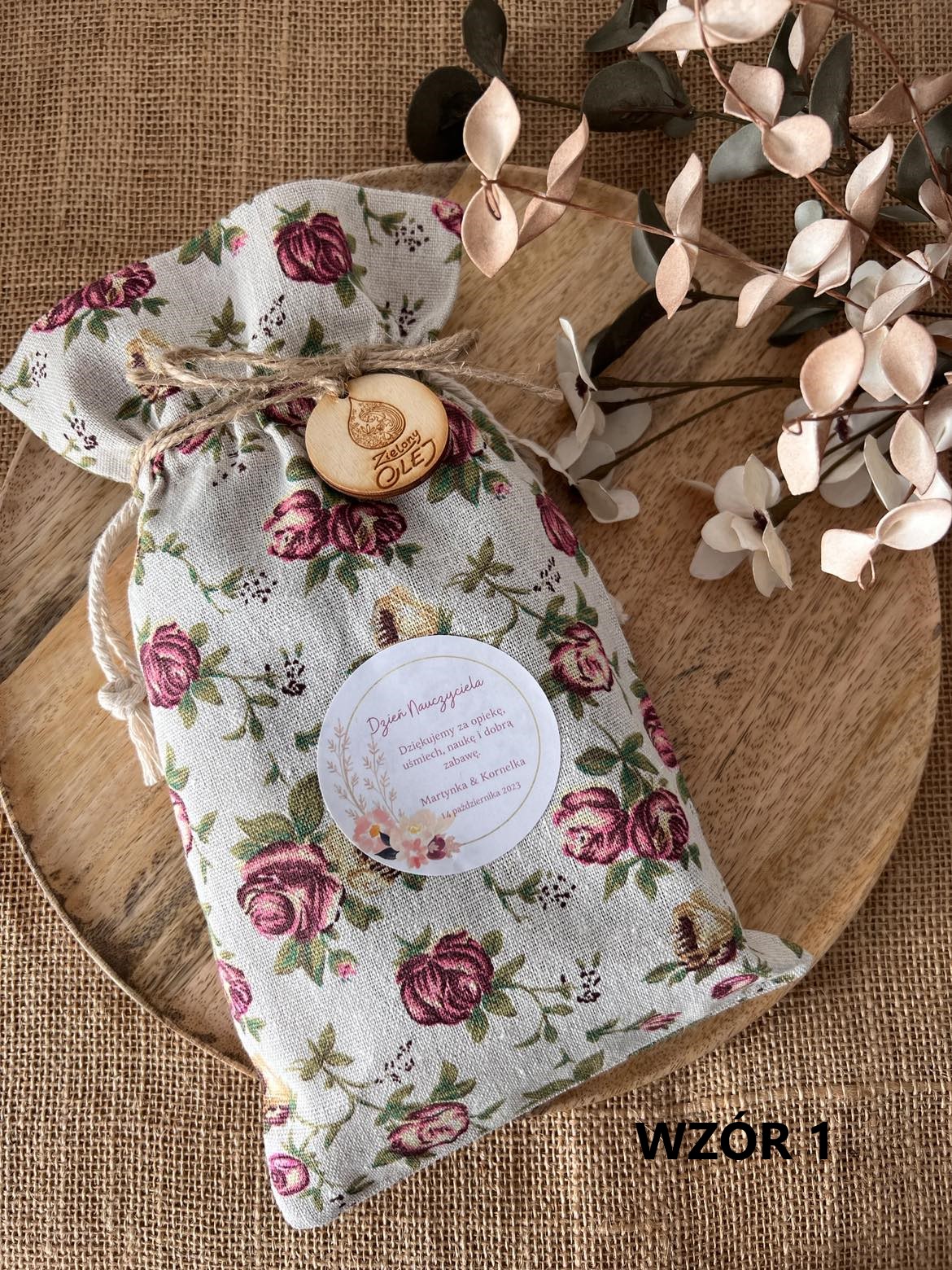 Cena zawiera: worek lniany/ jutowy + wypełnienie wełna drzewna + sznurek/ wstążka ozdobna + etykietka z własnym tekstem 🙂